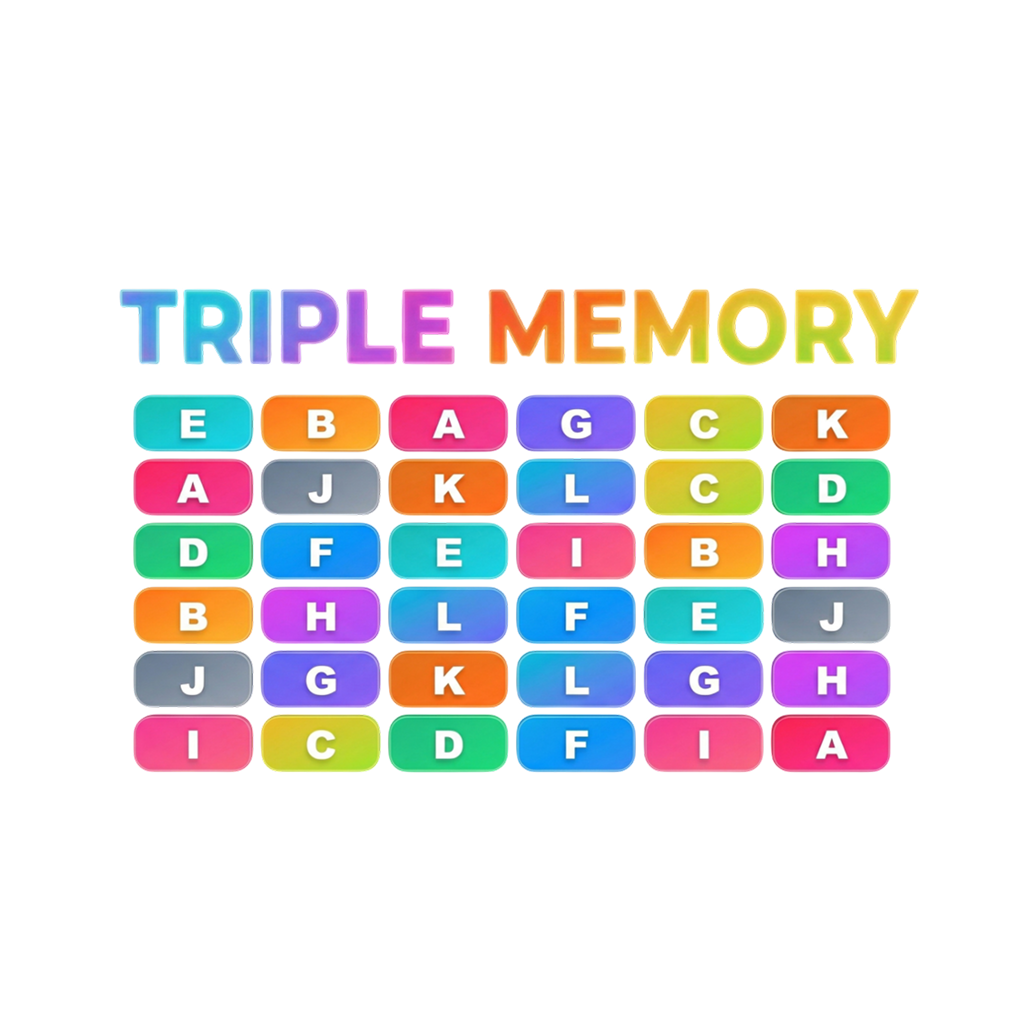 Triple Memory is a fast browser memory game built around clean card matching, short rounds, and repeatable score chasing.